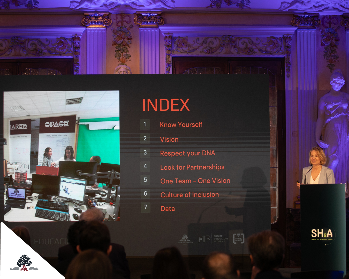 On Friday, March 14, Pilar Fernández, Director of Colegio Juan de Lanuza, delivered a keynote speech at the closing event of the 1st Aragón Hydrogen Week, sharing how our school has established itself as a leading reference in STEAM education.