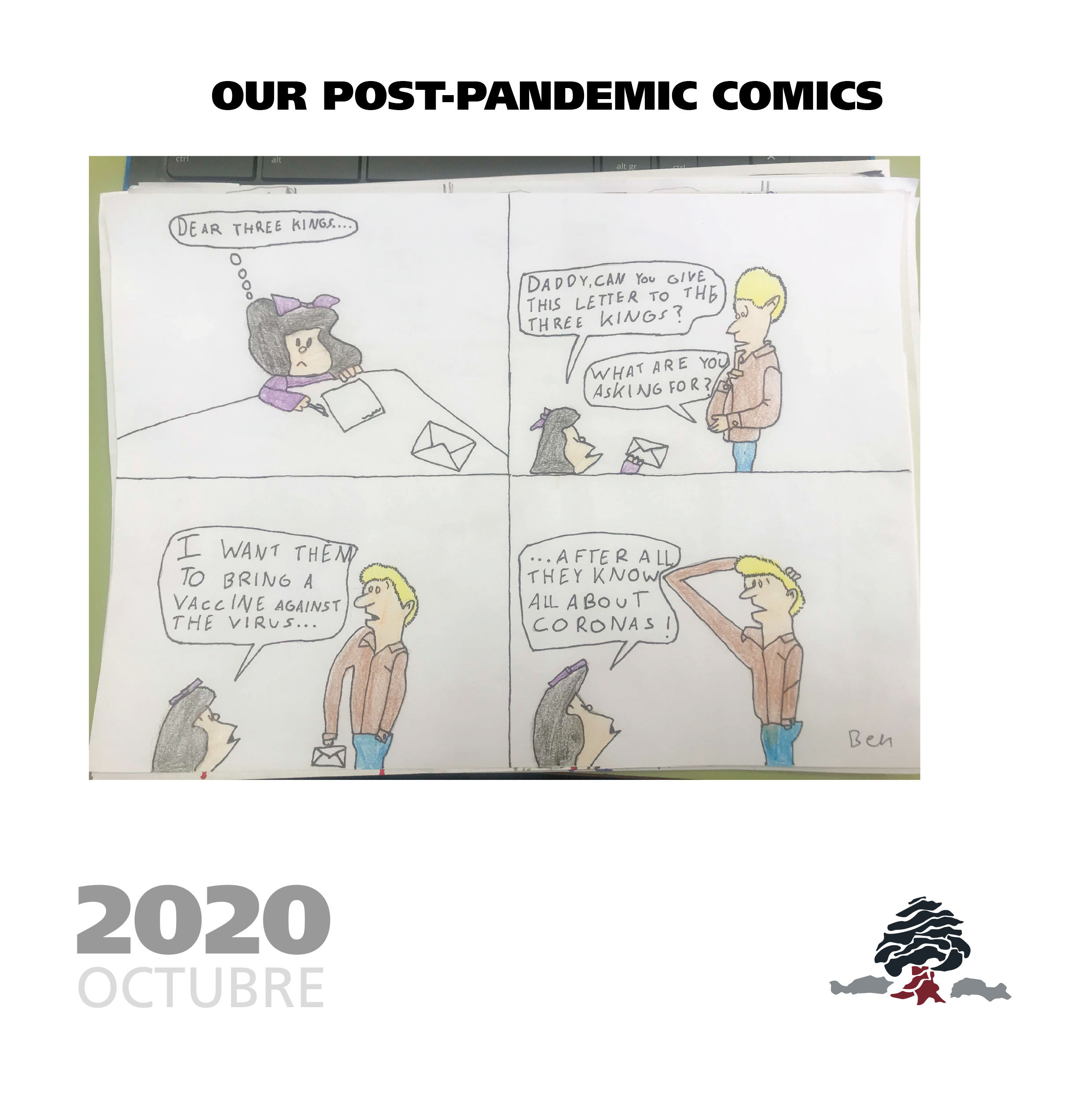 They loved working on this theme and, from there, they decided to invent their own comics imagining what our post-pandemic life will be like in the year 2040. In this way, they joined two very current topics, learned the elements that make up the comic and all of this in the English language.