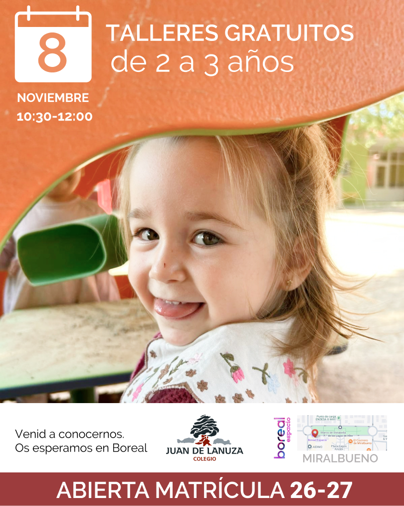 El Colegio Juan de Lanuza abre su periodo de matrícula para el curso 2026–27 y organiza una mañana de talleres gratuitos en Espacio Boreal (Miralbueno), dirigida a familias con niños y niñas de 2 a 3 años que deseen conocer …
