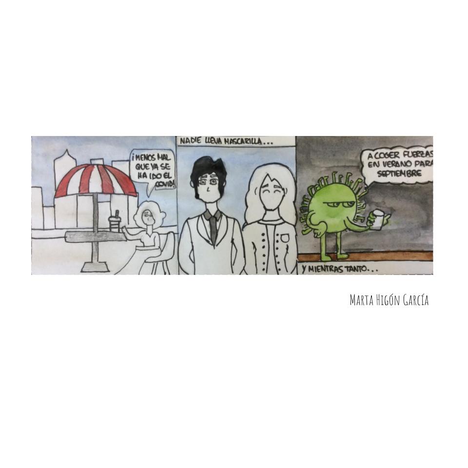 Un maravilloso ejemplo de ello es la primera actividad de este curso que ha preparado Alejandro Abadía en la materia 1º de Bachillerato: la creación de una Tira Cómica basada en el tema del Covid. El objetivo es que a partir de la situación actual, creen sus propios dibujos y vayan “soltando la mano”, como dicen los artistas, y observen la función comunicativa del dibujo, así como investigar sobre el formato de tiras cómicas.